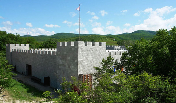 Замок Львиная голова в Сукко находится возле города Анапа, в живописном ущелье поселка Сукко. Он построен в стиле средневекового замка, четыре сторожевых башни по углам прямоугольного сооружения из высоких крепостных стен. Войти в замок можно через двустворчатые деревянные ворота.